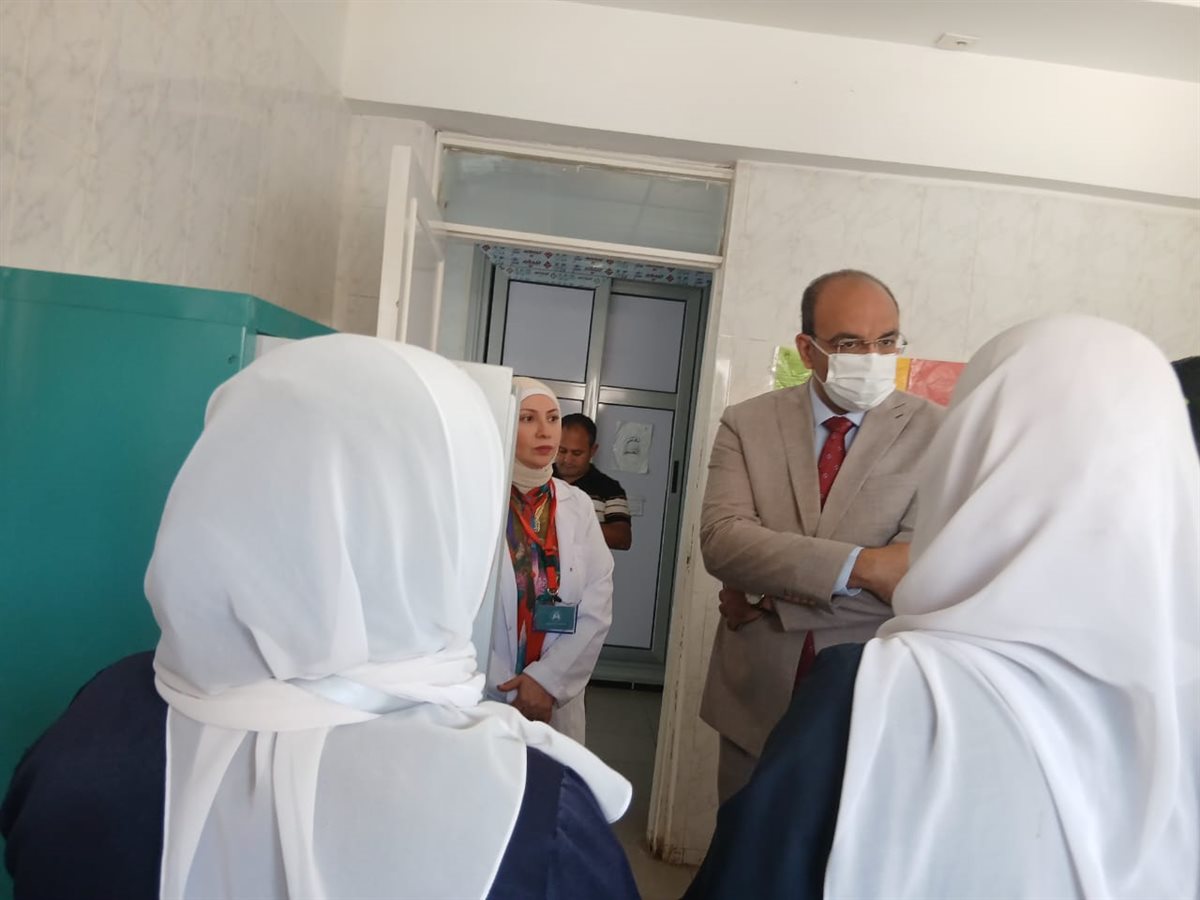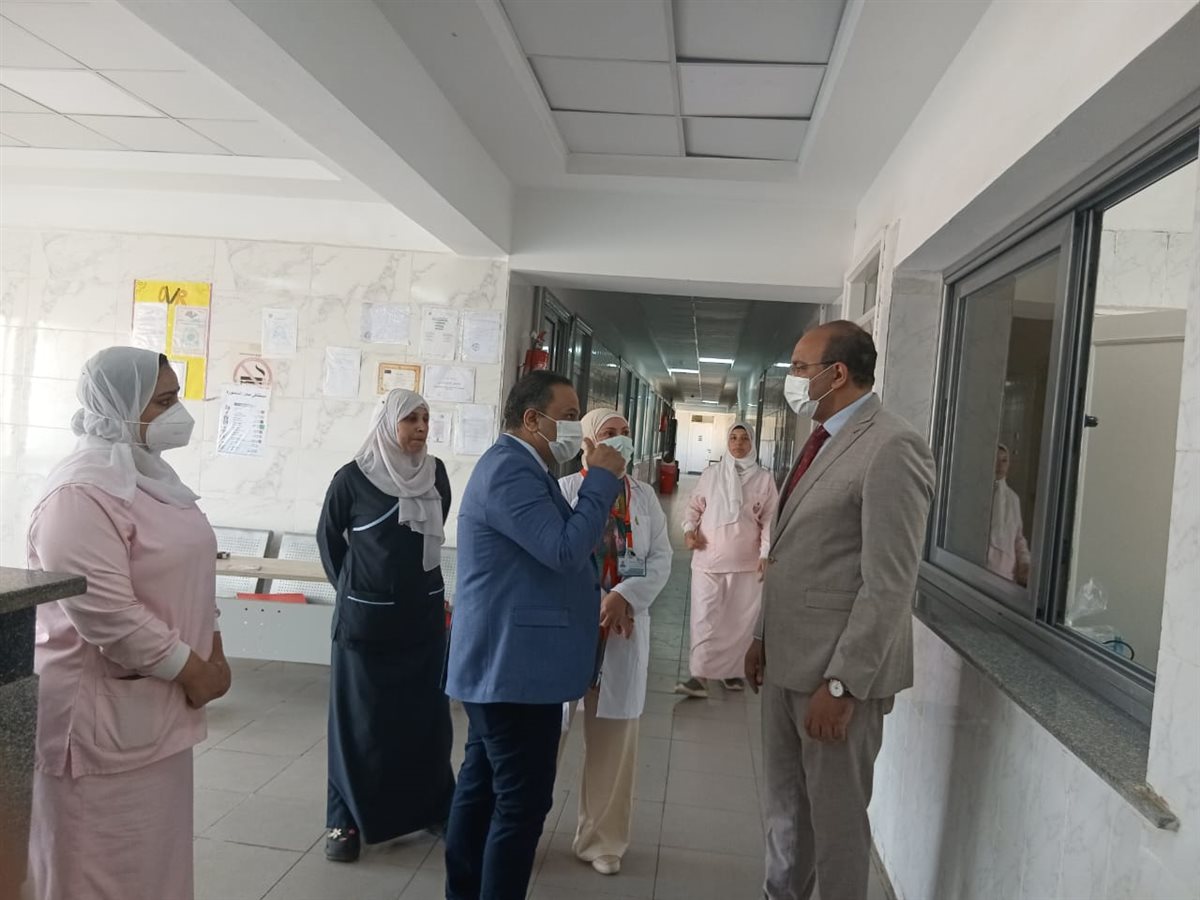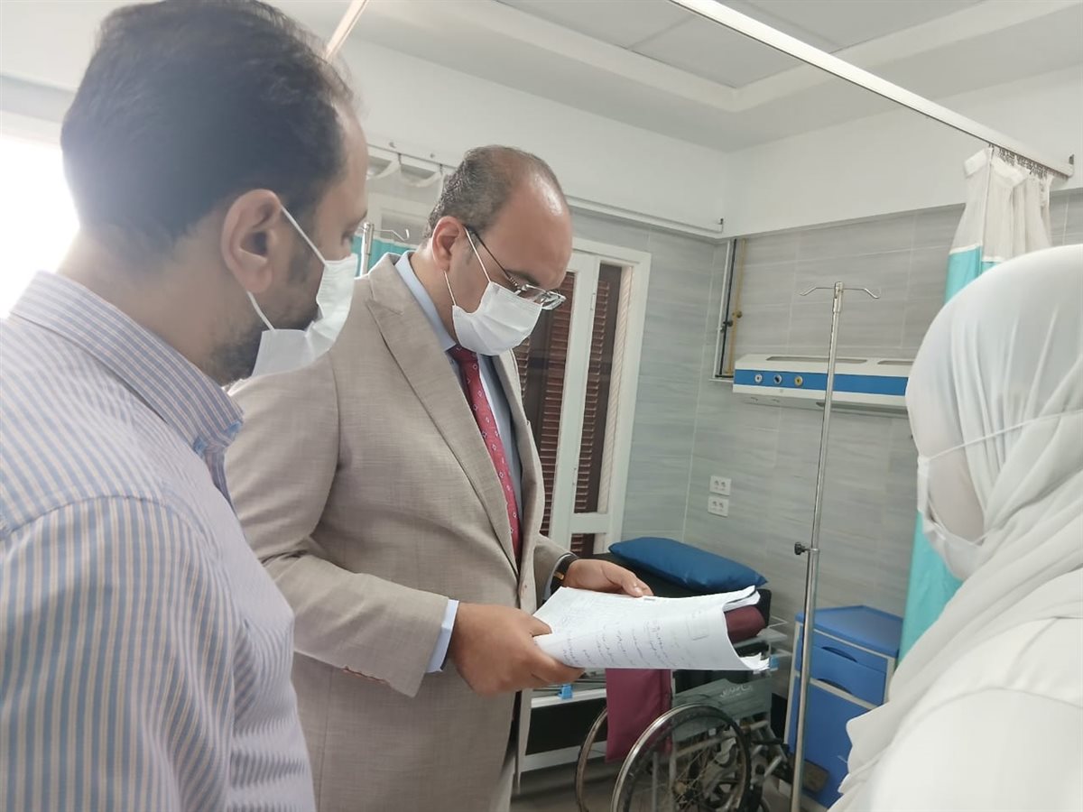 وكان في استقباله، الدكتور محمد السعيد مدير المستشفى، حيث رافقه خلال الجولة التي شملت الأقسام الداخلية، والعيادات الخارجية، وقسم الأشعة، والمعمل، وقسم حفظ الملفات الطبية، إلى جانب أقسام النساء المصابات بالالتهاب الرئوي، والحساسية، والدرن.