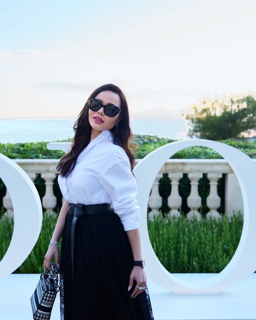 وشاركت أسما متابعيها الصور عبر حسابها الرسمي على "إنستجرام"، حيث ظهرت بإطلالة أنيقة بالكامل من توقيع ديور، ارتدت فيها بلوزة بيضاء أنيقة، وجيبة طويلة باللون الأسود، نسّقتها مع حقيبة يد، ساعة، ونظارة شمسيه من دار ديور.
