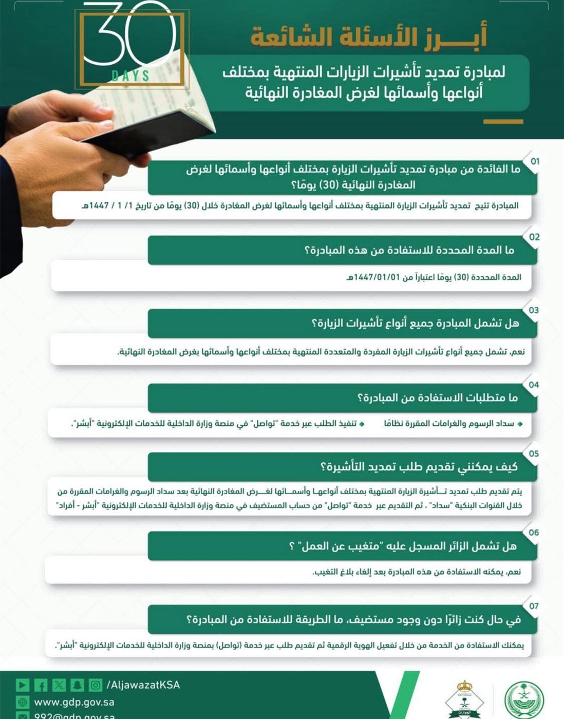 أبرز الأسئلة الشائعة حول تمديد تأشيرات الزيارة المنتهية بمختلف أنواعها ومسمياتها " انفوجراف"