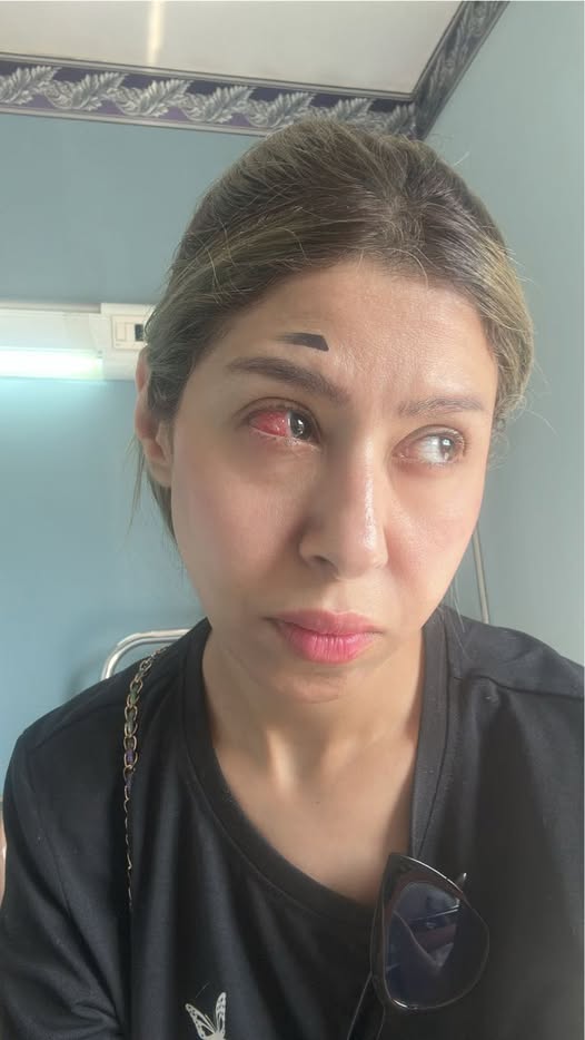 وشاركت إيناس عز الدين صوراً توضح إصابة عينها، وعلقت عليها قائلة: "الحمد لله كثيراً.. قطع في ملتحمة العين حصل"، وتابعت : "العيب فيا أنا عارفة.. أنا عايزه أعيط".