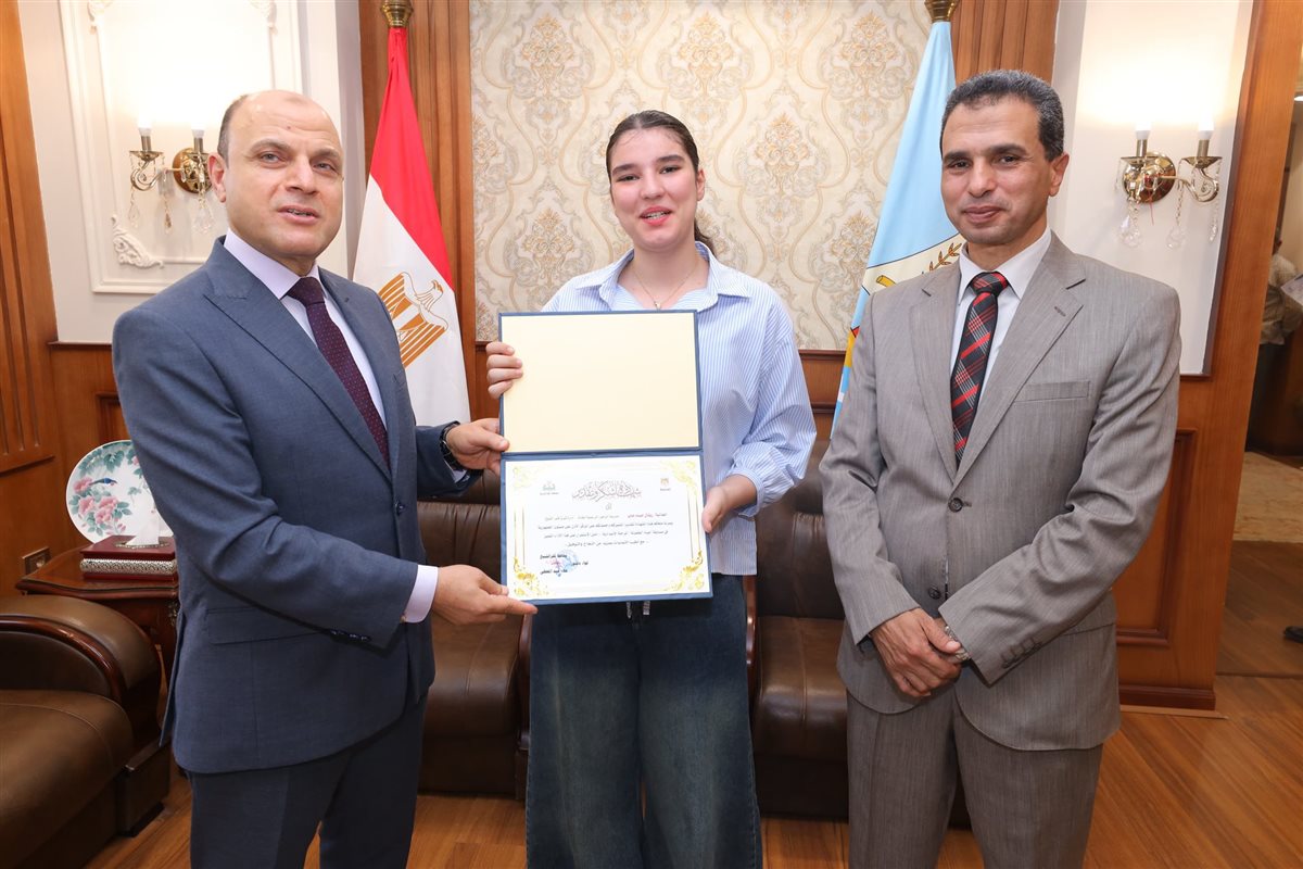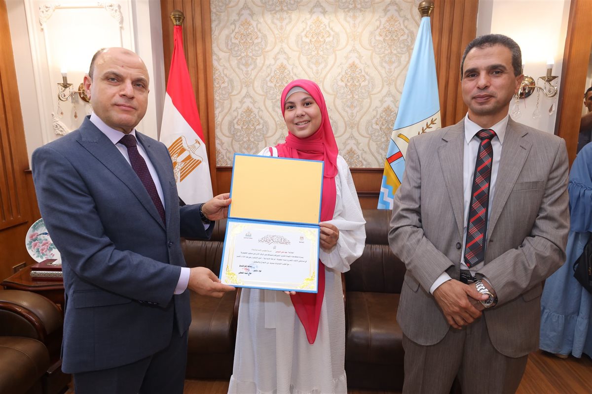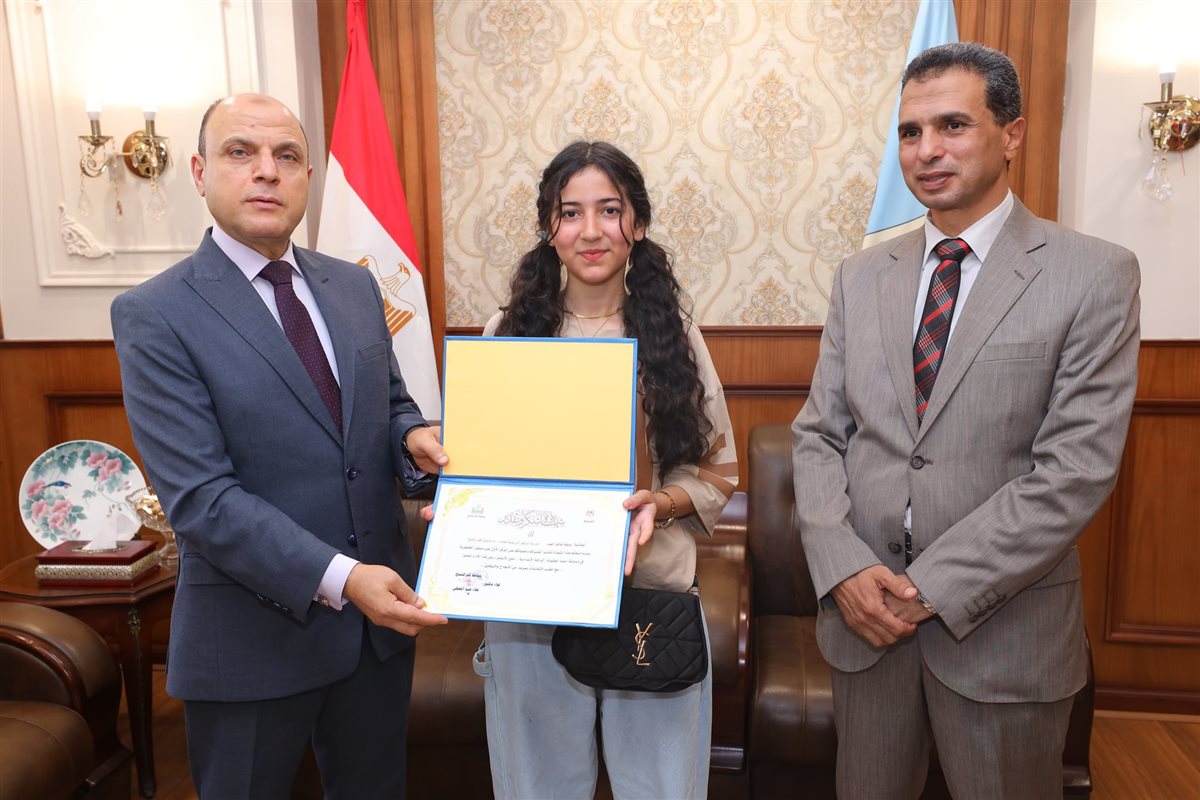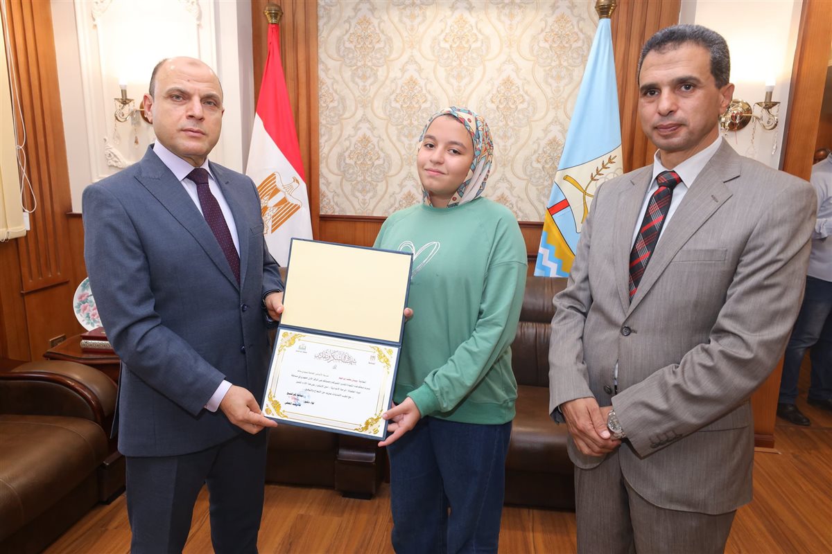 بحضور الدكتور علاء جوده وكيل وزارة التربية والتعليم، وذلك تقديرًا لتفوقهم وتميزهم في المجالات المختلفة، وهم: الطالبة ميار محمد رجب عثمان – إدارة برج البرلس التعليمية – المركز الأول جمهوريًا في مسابقة الإلقاء الشعري (المرحلة الابتدائية)، الطالبة عهد علي السيسي – إدارة مطوبس التعليمية – المركز الأول جمهوريًا في الإلقاء الشعري (المرحلة الإعدادية)، الطالب عبدالرحمن علي السيسي – إدارة مطوبس التعليمية – المركز الأول جمهوريًا في الإلقاء الشعري (المرحلة الثانوية).