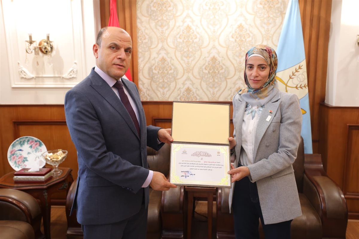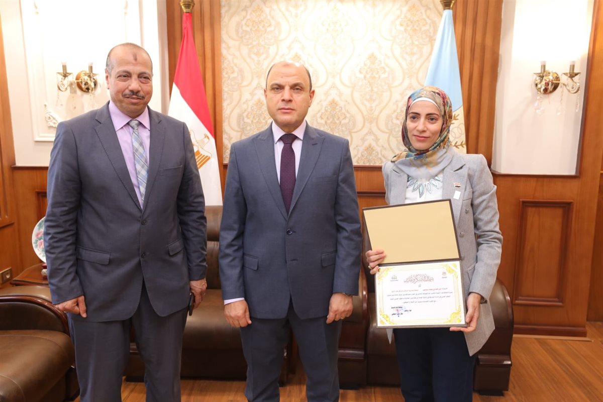 محافظ كفرالشيخ يكرم «منى المعداوي» لفوزها بجائزة الشارقة للمالية العامة
