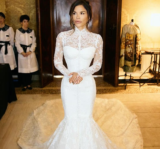 من جهة أخرى، كان لفستان زفاف بيزوس، العروس لورين سانشيز، نصيب وافر من الجدل، إذ تميز الفستان، الذي صممته دار الأزياء الإيطالية "دولتشي آند جابانا"، بياقة عالية وأكمام طويلة من الدانتيل، ما أعاد إلى الأذهان إطلالة كيت ميدلتون في زفافها الملكي عام 2011.