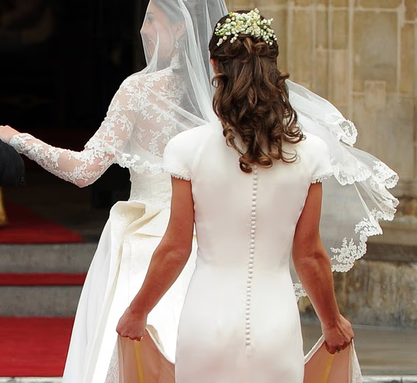 كما ذكر الجزء السفلي للفستان، بقصّته الضيقة عند الوركين وانسداله بانسيابية، كثيرين بفستان بيبا ميدلتون، الشقيقة الصغرى لدوقة كامبريدج، والذي سرق الأضواء في تلك المناسبة الملكية.