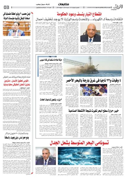 إليك أبرز العناوين الواردة في الصفحات المرفقة من جريدة "الوفد":
