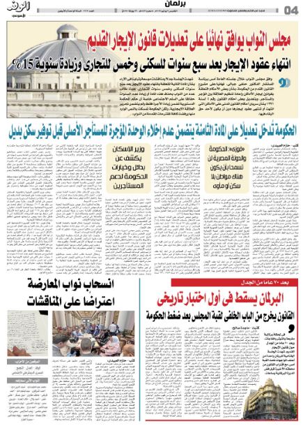 البرلمان يوافق على تعديلات "الإيجار القديم".