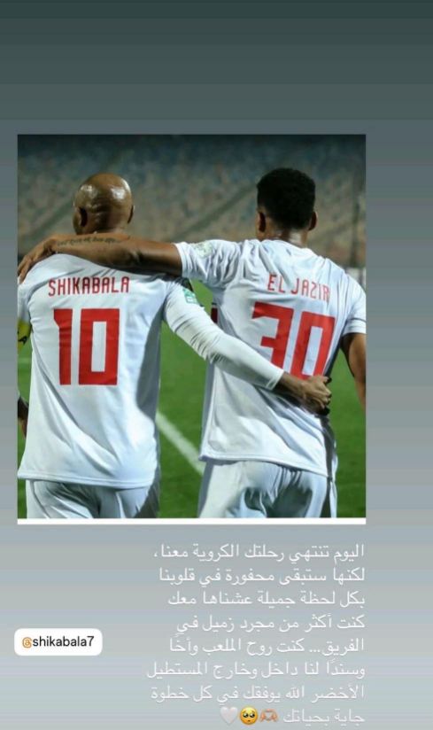وأضاف: “ كنت أكثر من مجرد زميل في الفريق، كنت روح الملعب وأخاً وسنداً لنا داخل وخارج المستطيل الأخضر، الله يوفقك في كل خطوة جاية بحياتك ”.