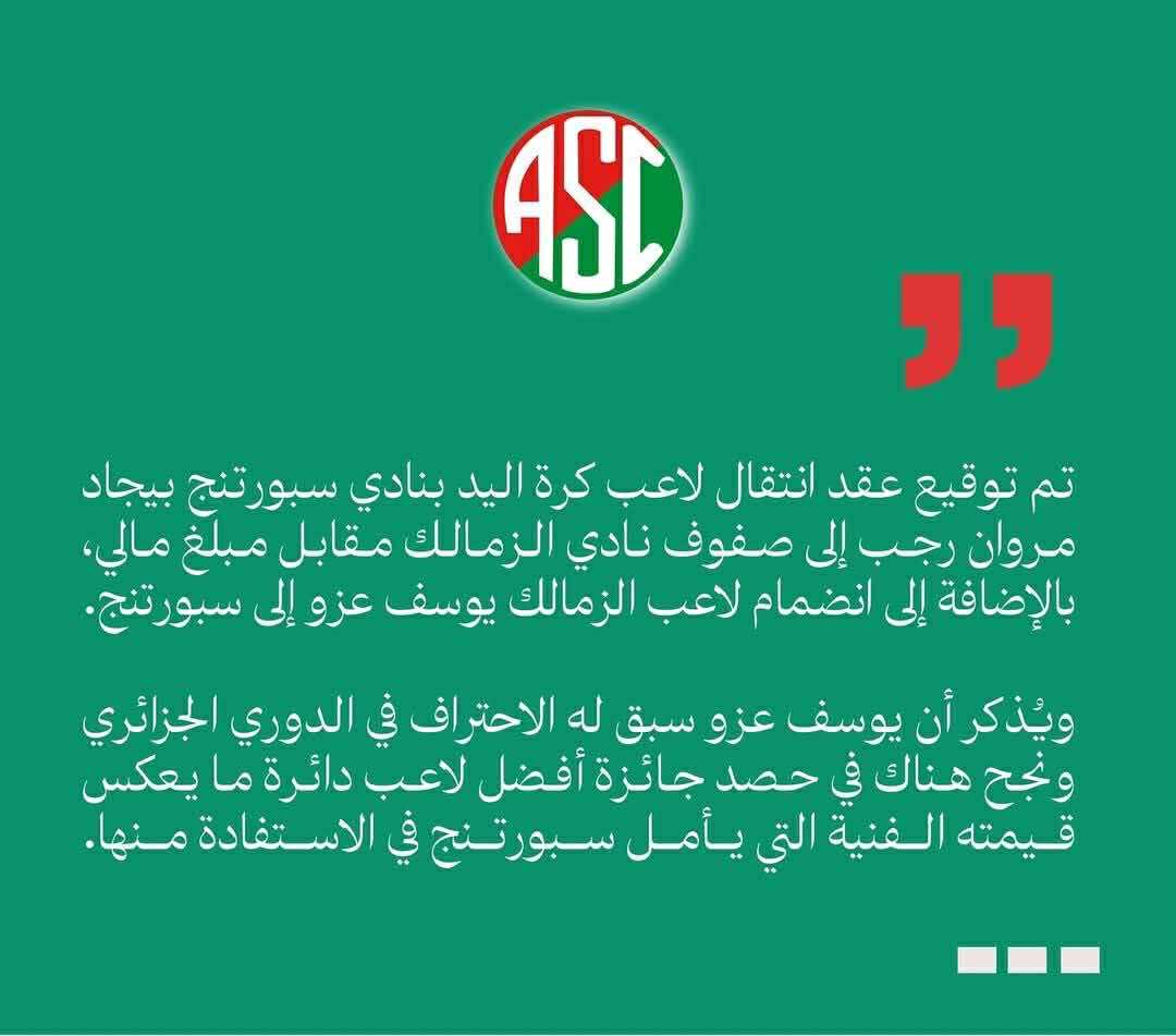 وأضاف المصدر ان الصفقة تضمنت انتقال لاعب الزمالك يوسف عزو إلى نادي سبورتنج إلى جانب مقابل مادي الذي تم الاتفاق عليه من قبل .