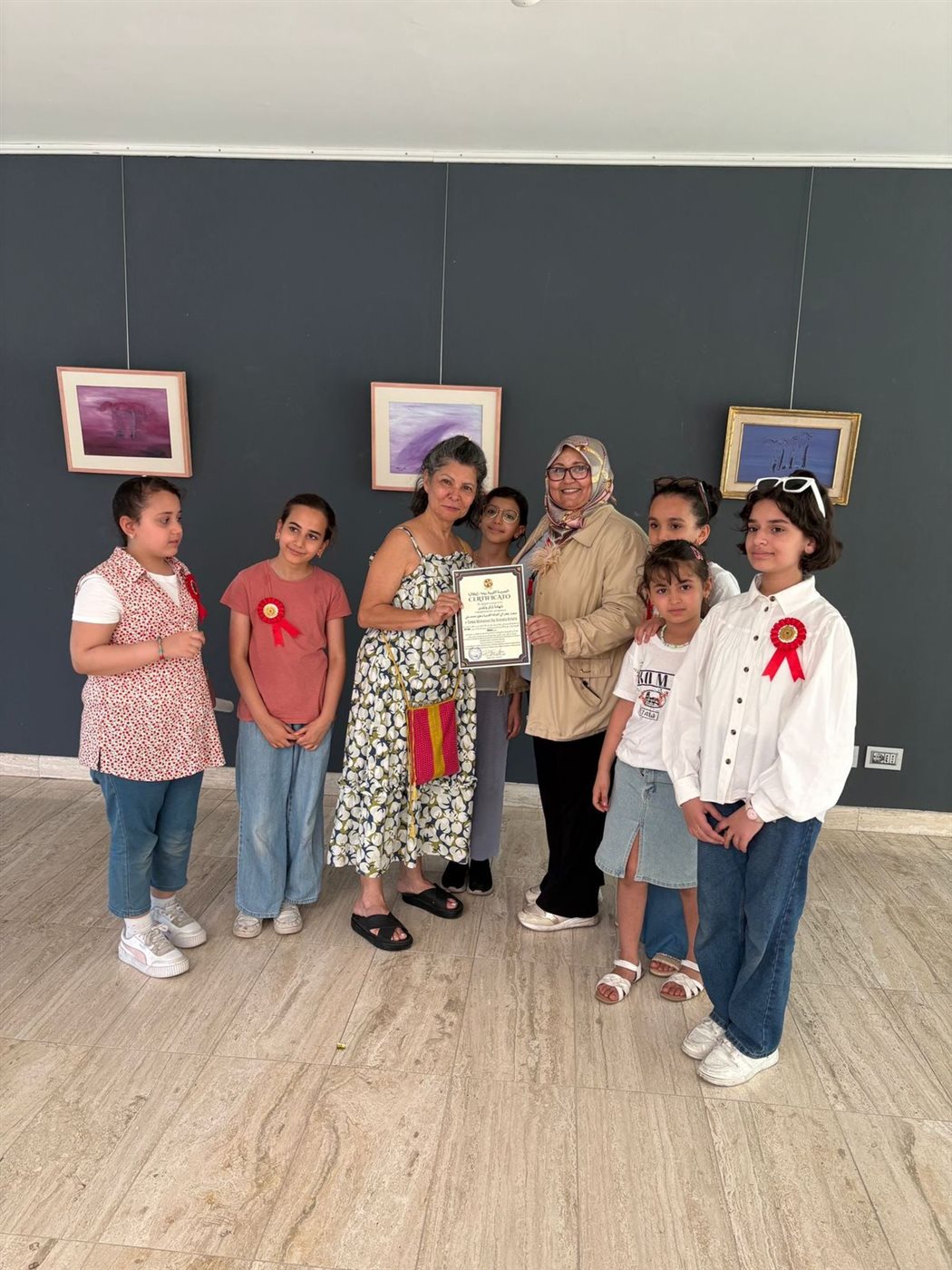 وفي الختام قامت مديرة الأكاديمية بتوزيع شهادات التقدير للمشاركين كما منحت الفنانة سلوى محمد علي درع الأكاديمية تقديرا لجهودها.