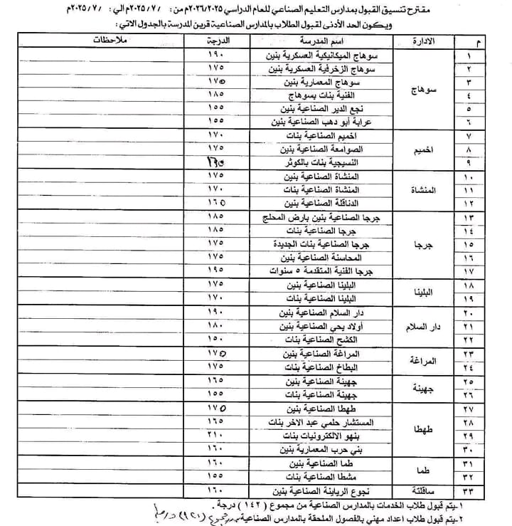 240 درجة للثانوي العام و140 درجة لمدارس التعليم الفني بسوهاج