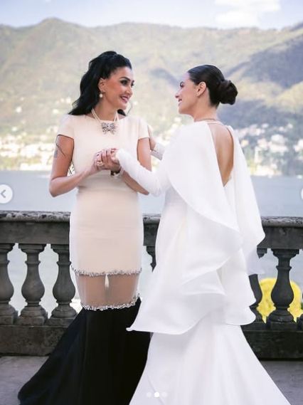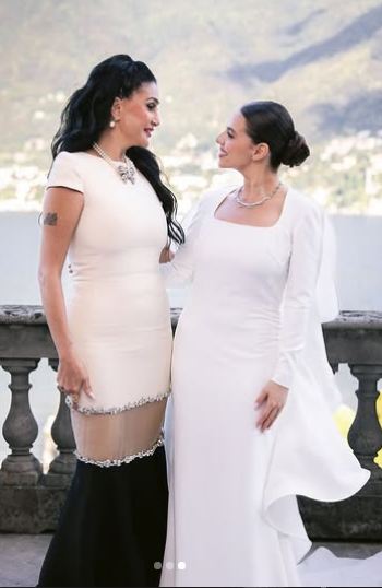 وتألقت غادة عبدالرازق بإطلالة ساحرة، حيث ارتدت فستانًا طويلًا مجسمًا، صمم من قماش الكريب والتل باللونين الأبيض في الأسود لتواكب موضة فساتين سهرة 2025.