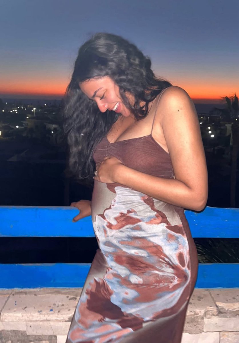 وأرفقت الصور بتعليق قالت فيه: أول إجازة صيفية لنا معًا يا حبيبي، في رسالة موجهة إلى الجنين.