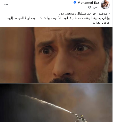 نشر الفنان محمد عز عبر صفحته الرسمية بموقع فيسبوك منشور يوضح من خلاله وجهة نظره حول التشابه بين أحداث مسلسل "النهاية" للنجم يوسف الشريف وحريق سنترال رمسيس.