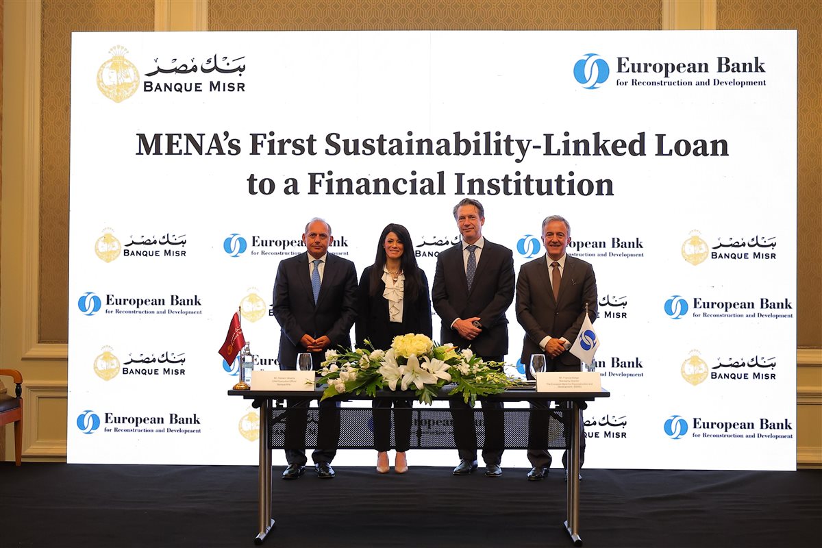 شهدت الدكتورة رانيا المشاط وزيرة التخطيط والتنمية الاقتصادية والتعاون الدولي، قيام بنك مصر بالتوقيع على أول قرض من نوعه في منطقة الشرق الأوسط وشمال إفريقيا مرتبط بالاستدامة لمؤسسة مالية، وذلك بقرض تمويلي قدره 100 مليون دولار أمريكي، مقدم بالكامل من البنك الأوروبي لإعادة الإعمار والتنمية، وبمشاركة بنك أبو ظبي الأول كمستشار بيئي ومستشار الاستدامة للصفقة.