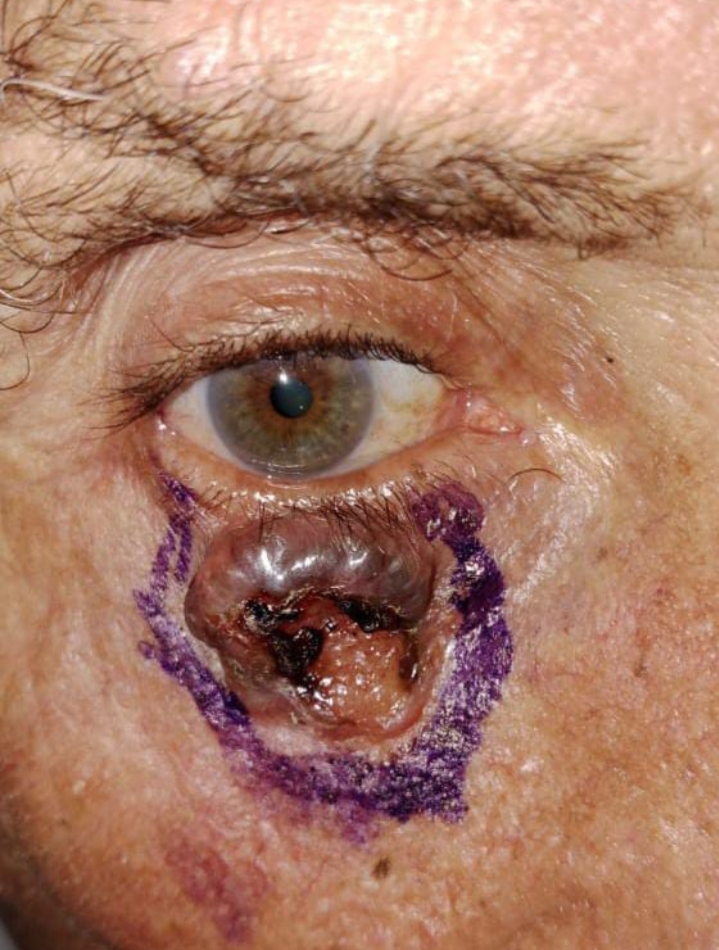وأوضح وكيل الوزارة، أن المريض كان يعاني من قرحة تأكليه مزمنة بالجفن العلوي، وقد تم استقباله بالمستشفى وإجراء الفحوصات الطبية والمعملية اللازمة، والتي كشفت عن وجود ورم سرطاني خبيث تطلب التدخل الجراحي الفوري .