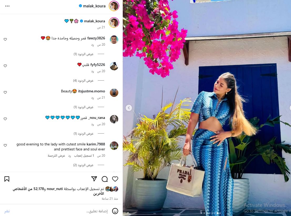 شاركت الفنانة ملك قورة متابعيها بأحدث إطلالتها عبر حسابها الشخصي بموقع الإنستجرام، خلال قضائها عطلتها الصيفية في أحدى الشواطئ الساحلية.