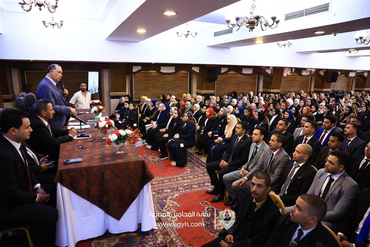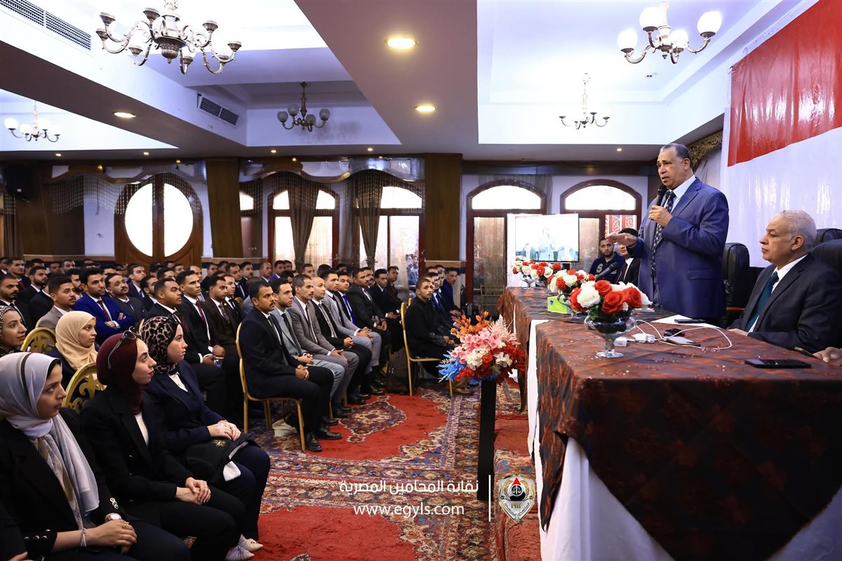 وفي مستهل كلمته، أكد النقيب العام، أن نقابة المحامين المصرية تعد أعرق نقابة مهنية في الوطن العربي ولها تاريخ مشرف، ويشرف أي شخص الانتماء إليها، ونتمنى أن تكونوا إضافة مهنية قوية للمحاماة ونقابة المحامين.