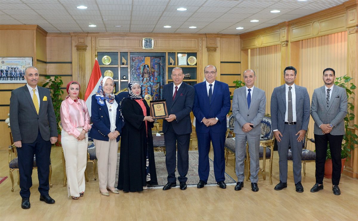 ومن جانبه، قدّم الدكتور شريف خاطر درع جامعة المنصورة إلى الوفد الزائر، تقديرًا لدور المجلس في دعم الإبداع الطلابي وتعزيز التعاون العربي في مجال التعليم والتدريب.