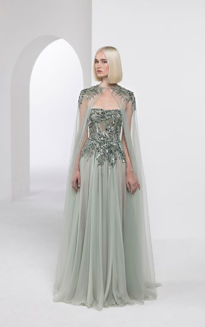 لا يتخلى زهير مراد عن بعض القصات في أغلب مجموعاته سواء لأزياء الكوتور أو الأزياء الجاهزة، ومن أبرزها الكاب الذي يزود به فساتينه الفخمة، من أكثر القطع التي وقعنا في عشقها مؤخراً في مجموعة ربيع وصيف 2024، الفستان الشيفون الأخضر النعناعي المحبوك بتطريز منمق في الجزء العلوي، والمزود بكاب طويل من الخامة نفسها محبوك بتطريز على الكتفين.