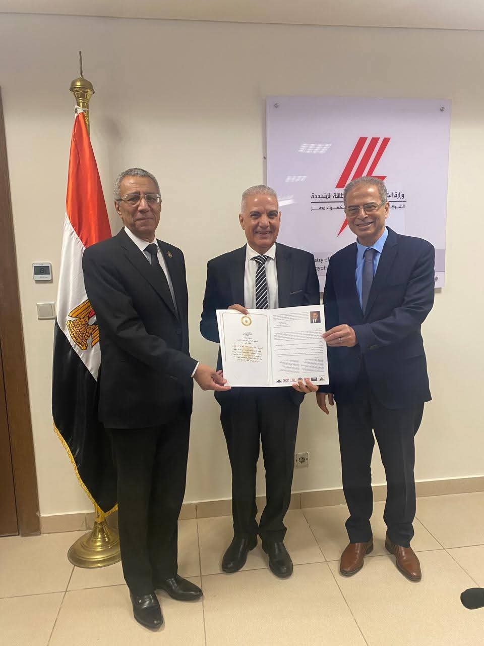وشهد مراسم استلام الشهادة كل من الدكتور خالد الدستاوي، العضو المتفرغ لشركات توزيع الكهرباء بالشركة القابضة والمحاسبة عزة رمضان، العضو المتفرع للشئون المالية، والدكتور أكرم إبراهيم، العضو المتفرغ للتخطيط والبحوث.
