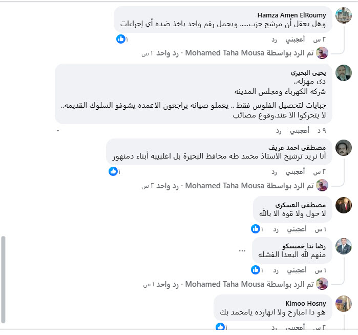 سادت حالة من الاستياء والغضب مدن ومراكز محافظة البحيرة ومدينة دمنهور خاصة وذلك بعد ان تسببت الدعاية المستفزة التى يقوم بها مرشحى الاحزب التى تسمى نفسها احزاب الحكومة حيث ادى الدعاية العشوائية وبدون تصريح الى سقوط عمود إنارة أمام أحد المساحد باحدى الشوارع المهمة بوسط المينة والذى يوجد بجواره مقر المحكمة القديمة وكذا