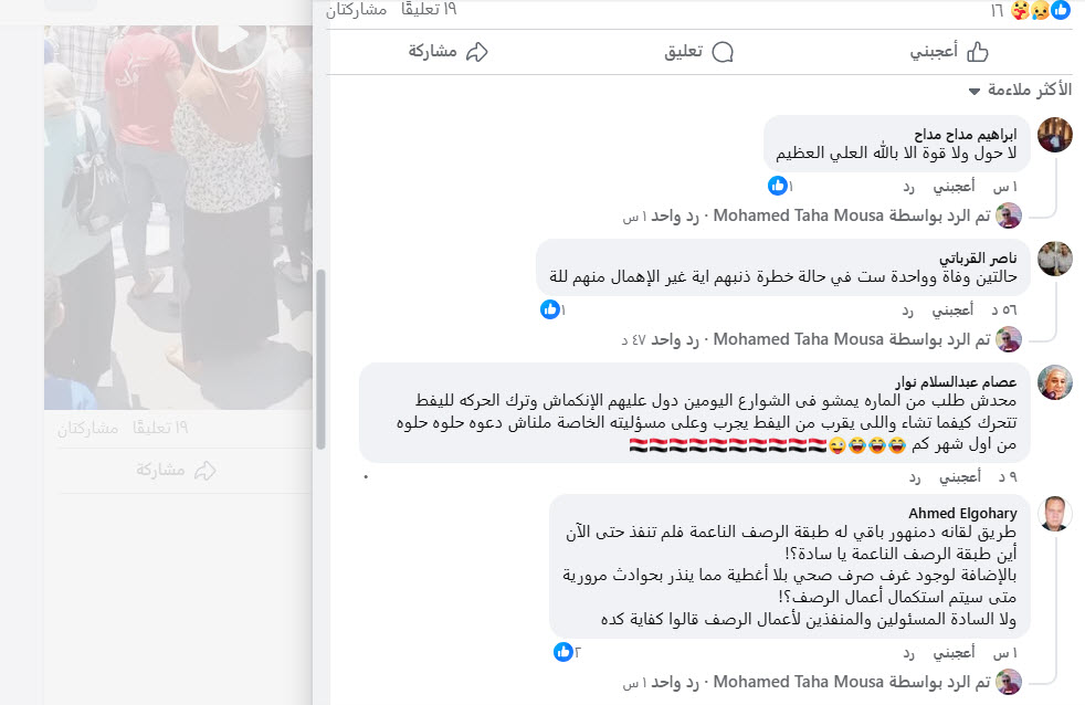 . وقد انتشر فيديو يظهر سقوط العمود بالافته التى عليه وسط جمع من الناس في وقت الزروة ولولا العناية الالهية لوقعت كارثة لايحمد عقباها . وكان قد سيطرت حالة من