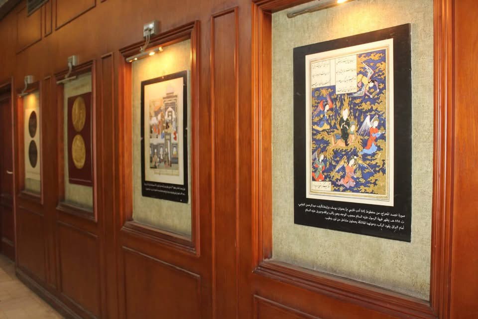 ومن أبرز المستنسخات التي يضمها المعرض صورة تجسد المعراج من مخطوط (٤٥ أدب فارسي) بعنوان يوسف وزليخا ترجع إلى عام ٨٩٨ هجري، يظهر فيها الرسول صلى الله عليه وسلم، مبرقع الوجه، راكبا براقه، ومعه جبريل عليه السلام وحولهما الملائكة. كما يضم المعرض وحدات زخرفية من المصاحف المملوكية من بينها مصحف محمد بك أبو الدهب، بالإضافة إلى لوحات من مصاحف نادرة مثل مصحف محلى بالذهب كتب في ثلاثين ورقة، وتشتمل كل لوحة منه على جزء كامل من القرآن الكريم كتبه محمد بن روح الله بن الحافظ اللاهوري سنة ١١٠٨ هجريا.