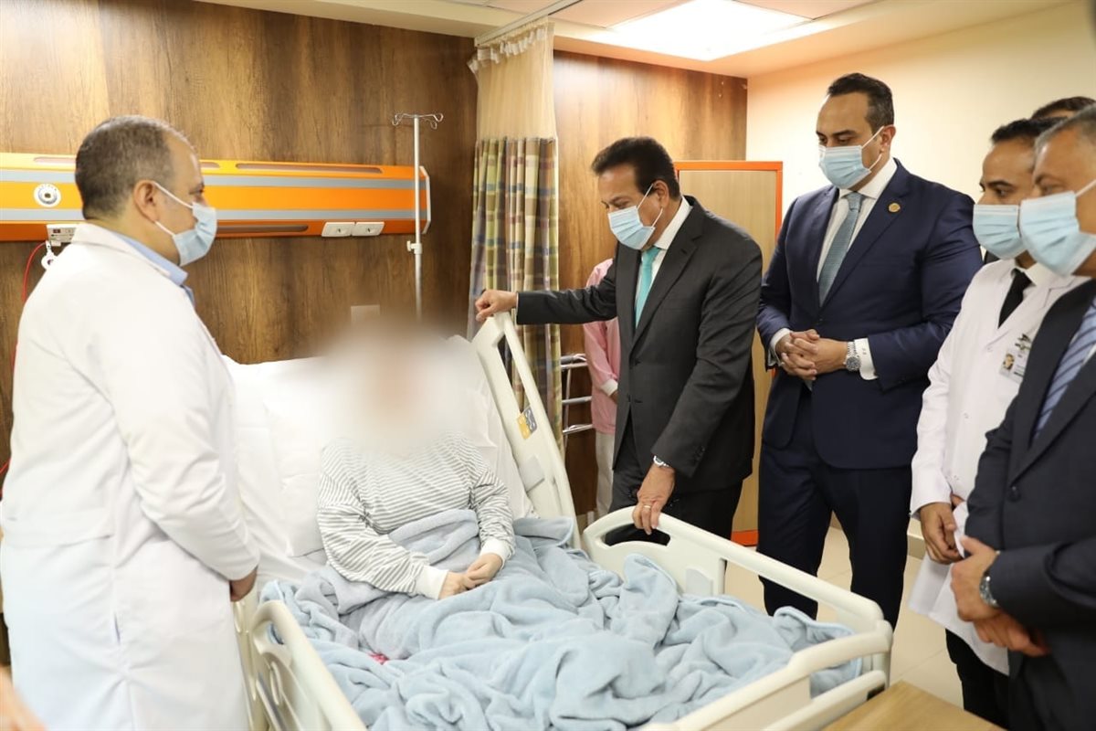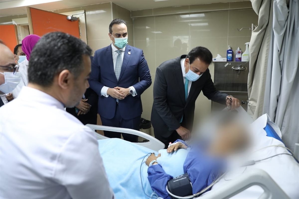 رافق الوزير خلال الزيارة، الدكتور. أحمد السبكي، رئيس هيئة الرعاية الصحية والدكتور انور إسماعيل، مساعد الوزير للمشروعات القومية، والدكتور بيتر وجيه، مساعد الوزير لشؤون الطب العلاجي، ة، والدكتور أحمد مصطفى، رئيس هيئة التأمين الصحي.