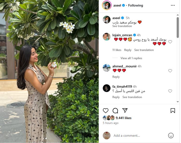اعتادت النجمة السعودية أسيل عمران مشاركة متابعيها أحدث إطلالاتها عبر حسابها الشخصي بموقع تبادل الفيديوهات والصور الأشهر “إنستجرام”.
