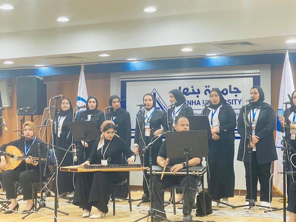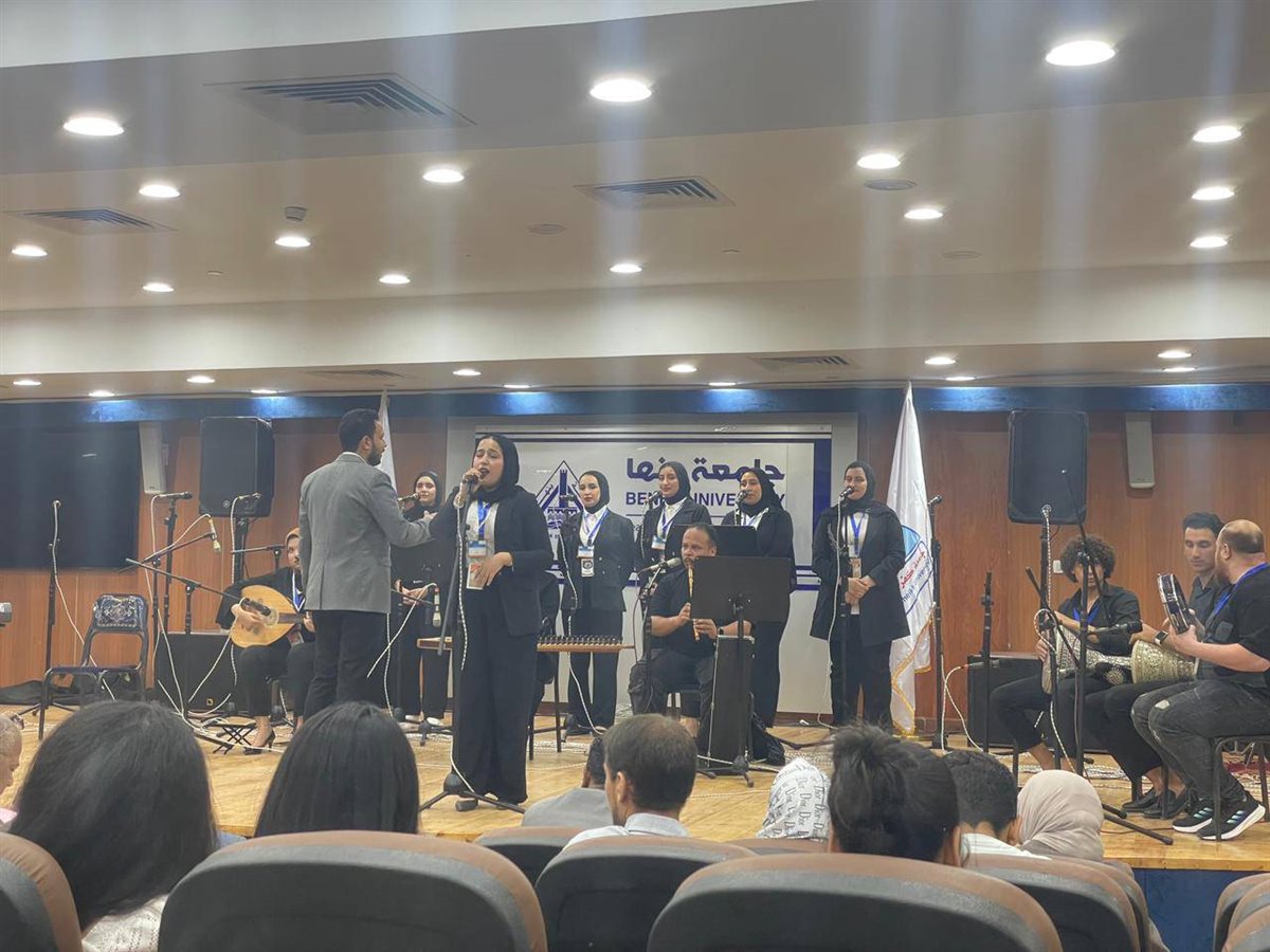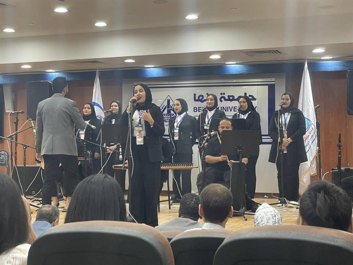 وشارك وفد الكلية في مجالي الغناء والعزف، حيث قدّم فريق الكورال الطلابي عرضًا غنائيًا متكاملًا، تميز بالانسجام الصوتي والتناغم اللحني، وضمّ باقة من الأغنيات التي تعكس الذوق المصري الأصيل وتُبرز الهوية الوطنية، بما يتماشى مع معايير لجنة التحكيم الخاصة بالمجال، بإشراف الدكتور أميرة عكاشة رئيس قسم التربية الموسيقية والمايسترو مينا عماد لبيب – المعيد بقسم التربية الموسيقية.
