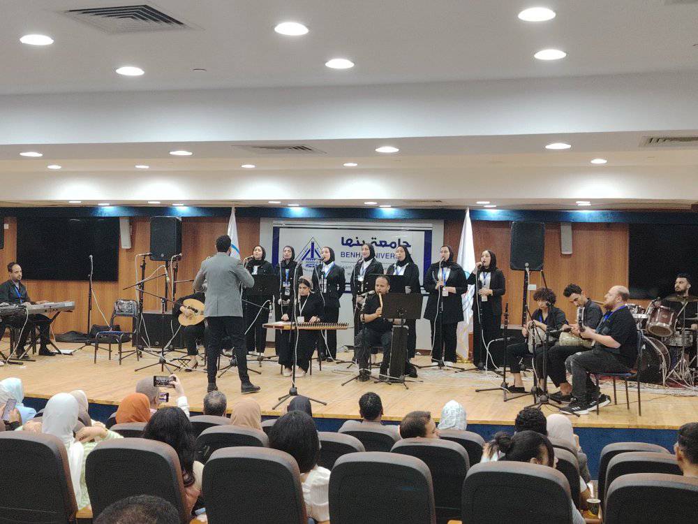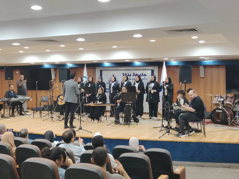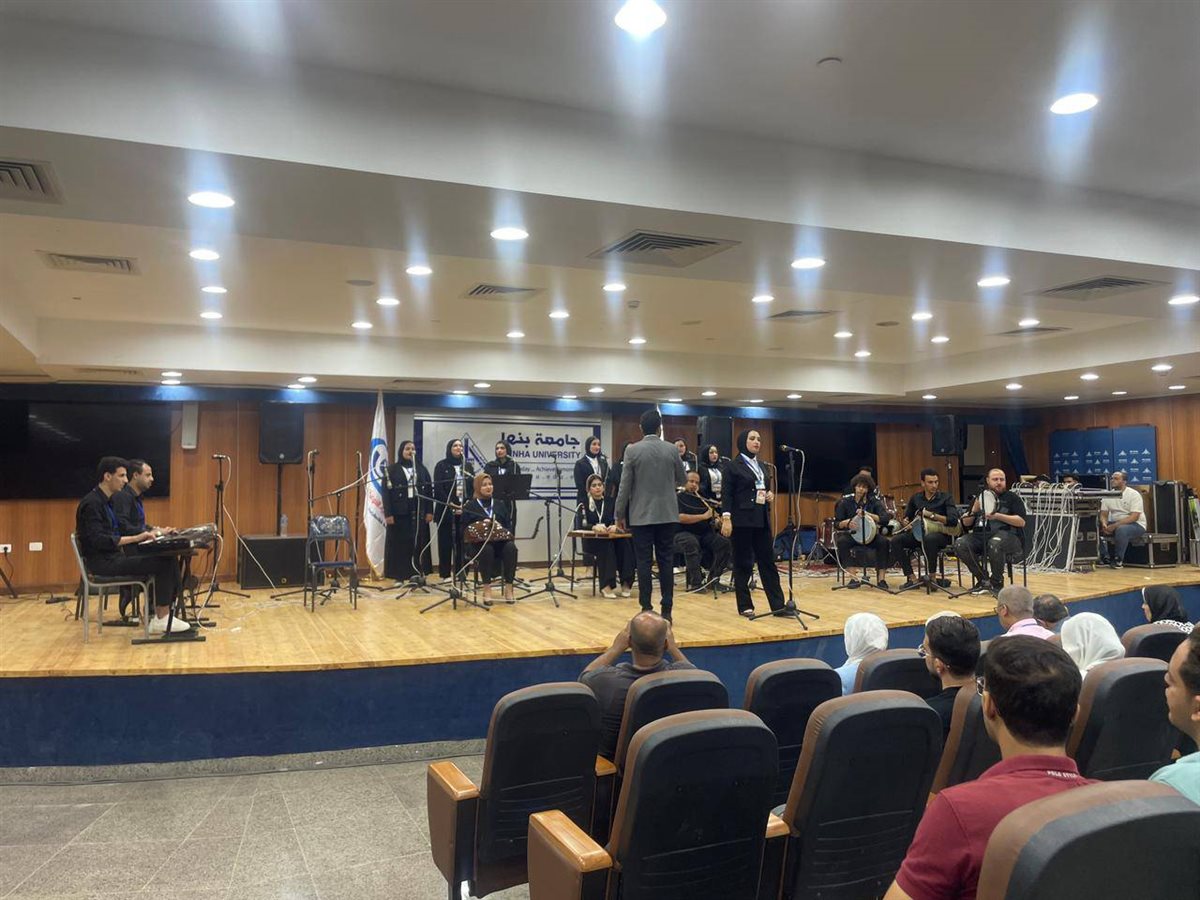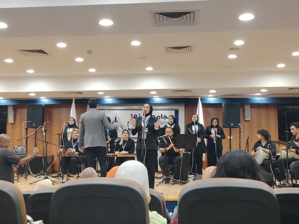 وشارك وفد الكلية في مجالي الغناء والعزف، حيث قدّم فريق الكورال الطلابي عرضًا غنائيًا متكاملًا، تميز بالانسجام الصوتي والتناغم اللحني، وضمّ باقة من الأغنيات التي تعكس الذوق المصري الأصيل وتُبرز الهوية الوطنية، بما يتماشى مع معايير لجنة التحكيم الخاصة بالمجال، بإشراف الدكتور أميرة عكاشة رئيس قسم التربية الموسيقية والمايسترو مينا عماد لبيب – المعيد بقسم التربية الموسيقية.
