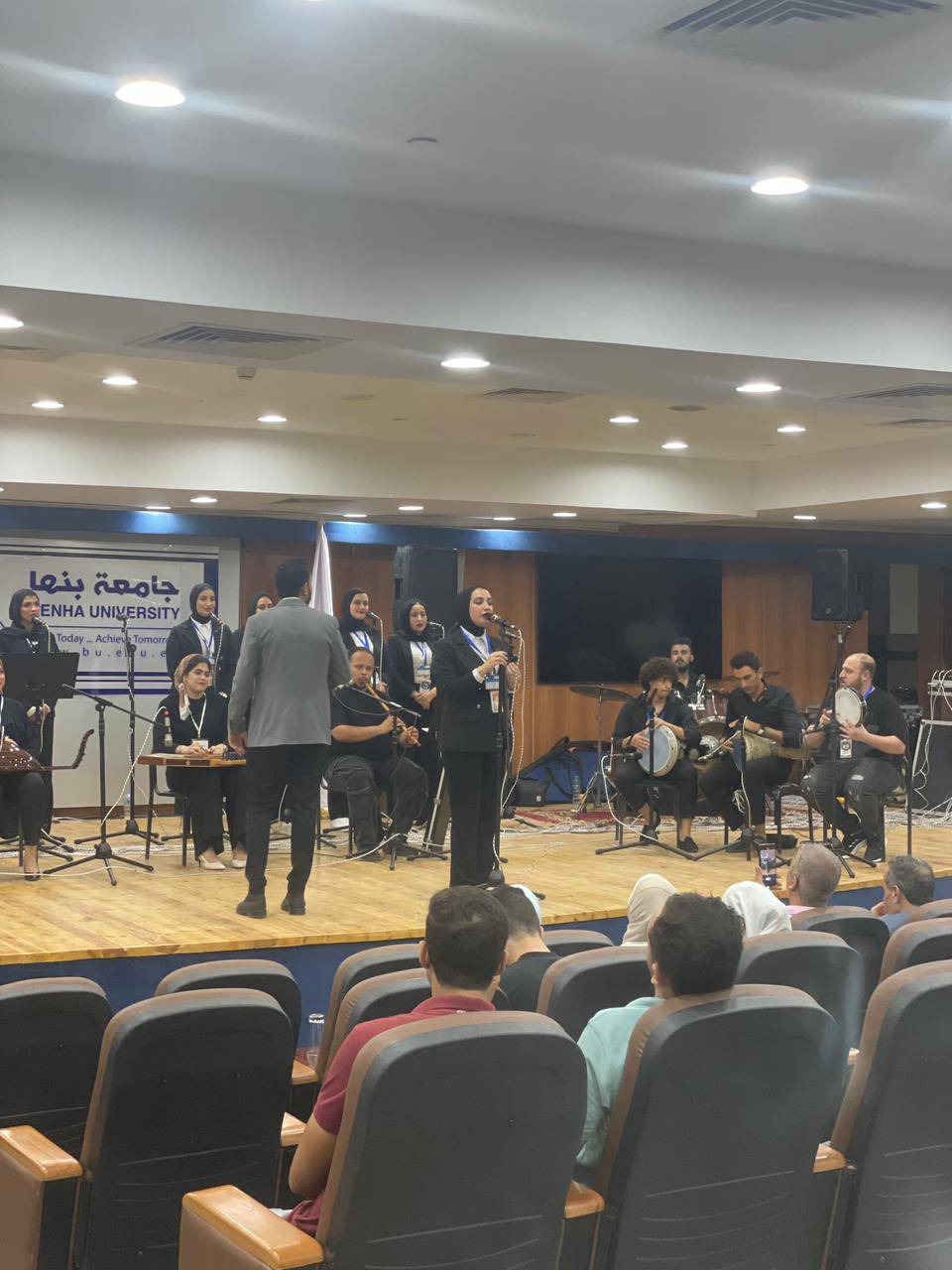 كما تألقت في العرض أيضًا هالة منصور المرادني – المعيدة بقسم التربية الموسيقية، بالعزف على القانون وقدّمت أداءً متميزًا نال استحسان لجنة التحكيم والحضور، لما تميّز به من صدق تعبير وصفاء نغمي يعبّر عن موهبة موسيقية أكاديمية صاعدة.