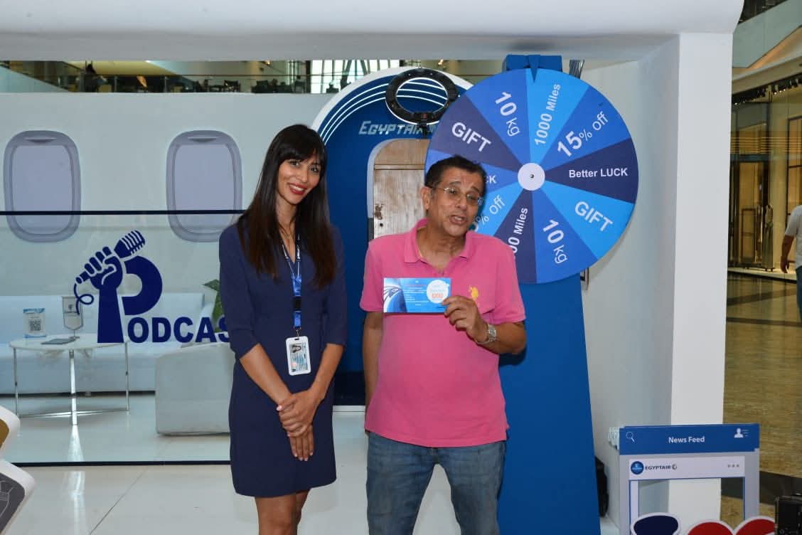 قدمت مصر للطيران لعملائها من خلال الجناح العديد من التخفيضات على تذاكر السفر والأميال الإضافية المجانية على بطاقات برنامج المسافر الدائم، كما قدمت لعملائها فرصة التقاط صورة تذكارية فورية مع طائرة مصر للطيران، وانتشرت إعلانات مصر للطيران الدعائية بكثافة داخل المول، كما شارك في فعاليات الجناح المتنوعة المئات من زوار المركز التجاري.