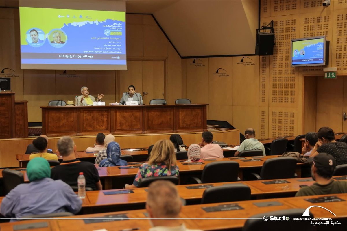 نظمت مكتبة الإسكندرية اليوم ضمن البرنامج الثقافي لمعرضها الدولي للكتاب محاضرة بعنوان "السياسات الثقافية في مصر"، تحدث فيها الدكتور عماد أبو غازي؛ أستاذ الوثائق والتاريخ الحديث بجامعة القاهرة ووزير الثقافة الأسبق، وقدم الندوة الكاتب محمد سيد ريان.