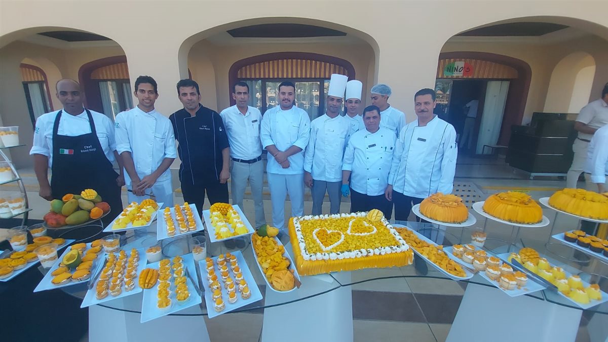 وقال الشيف محمد عباس الشيف العمومي لإحدى الفنادق بالغردقة ان مهرجان اليوم شارك فيه 15 شيف بالإضافة 6 مساعدين من قسم الحلوانى بالفندق بطن من المانجو .