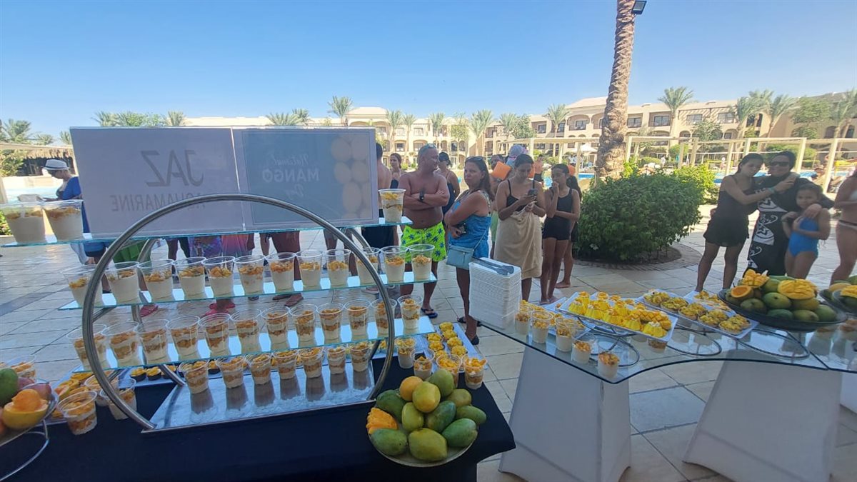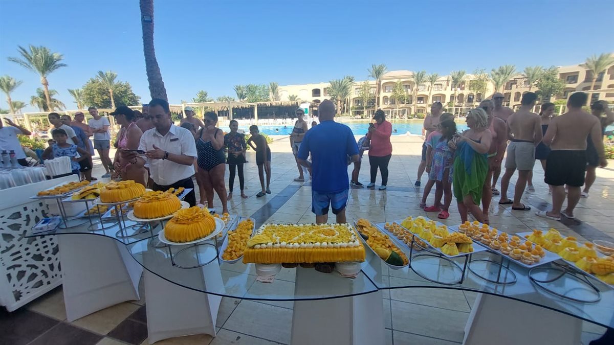وأشار عباس إلى أنه تم تقديم كل الأكلات بالمانجو من تورت وجاتوه وعصائر وسط إقبال كبير من السياح وخاصة الاطفال .