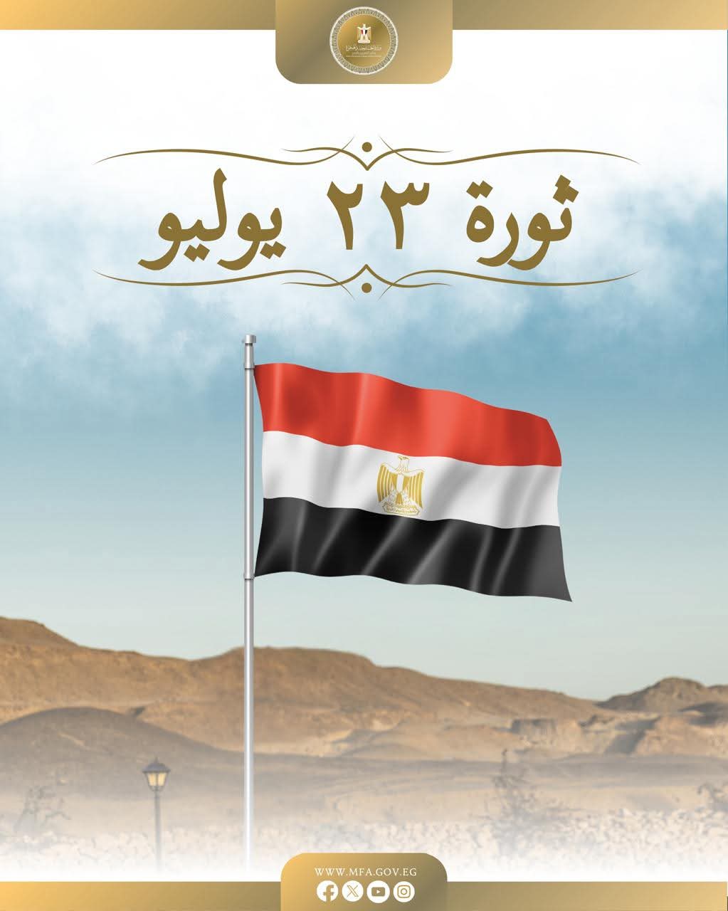 وزارة الخارجية والهجرة تهنئ الرئيس السيسي والشعب المصري بذكرى ثورة 23 يوليو