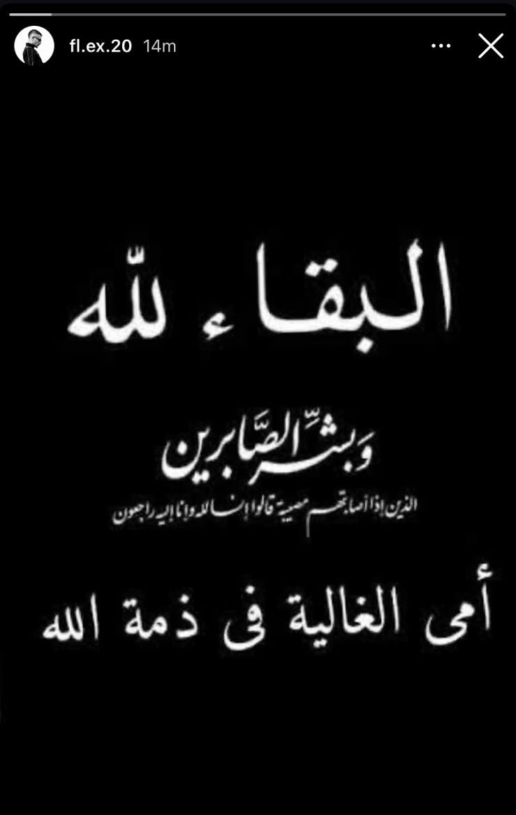 وكتب فليكس في استوري، عبر حسابه بـ"إنستجرام": “البقاء لله أمي الغالية في ذمة الله”.