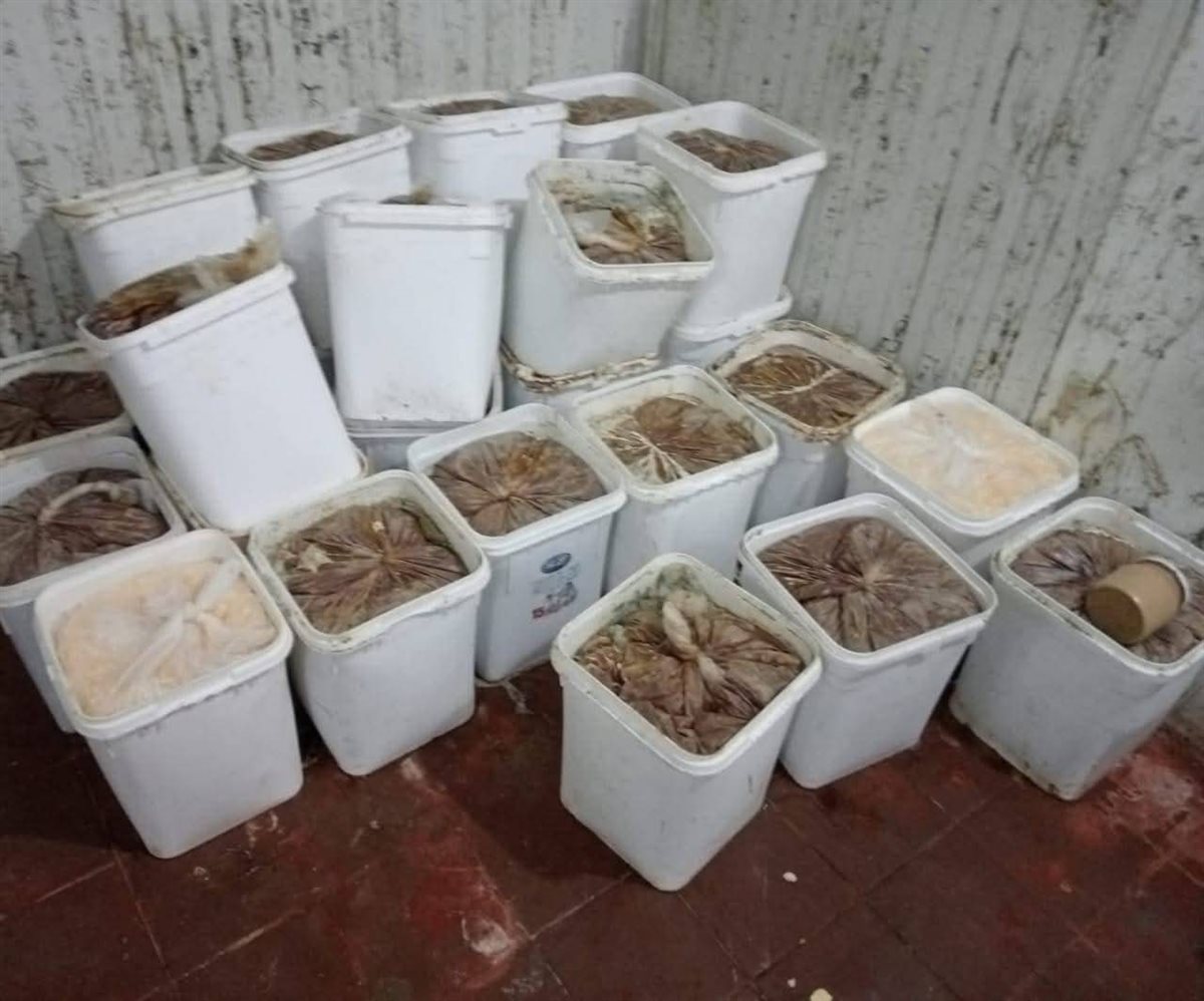 فقد واصلت الحملة جولتها لتداهم مخزناً تابعاً لمنتجات الألبان، وهناك كانت الصدمة أكبر، حيث تم ضبط كمية ضخمة تزن 3100 كيلو، أي ما يزيد عن ثلاثة أطنان، من "البروتين الحيواني" المحفوظ في ظروف سيئة، ومجهول المصدر ،  كانت خاليه من أية بيانات أو علامات تجارية أو تواريخ صلاحية.