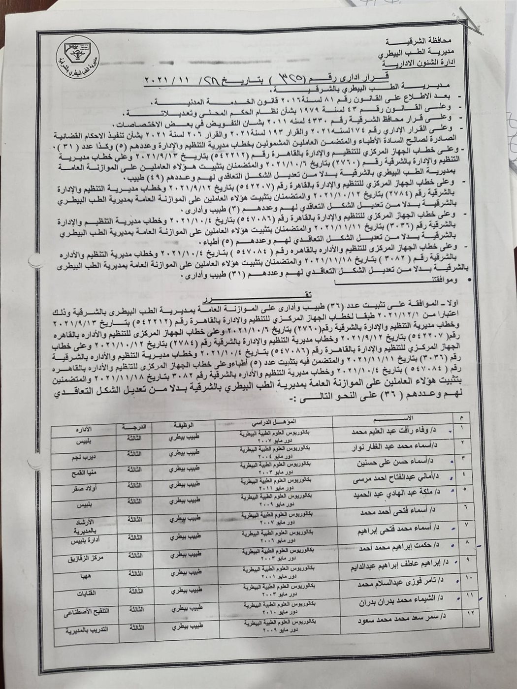 بيطريون معينون بلا مرتبات.. والترقية مطالب أطباء الشرقية والغربية والمنوفية