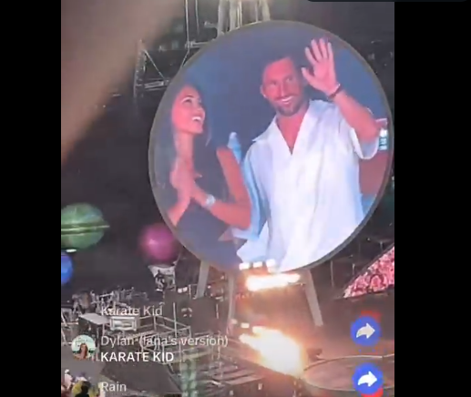 أثناء الحفل، اقتربت الكاميرا من ميسي وأنتونيلا بينما كانا يستمتعان بأداء كولدبلاي في الصفوف الأمامية، بدلًا من أن يخطفا الأنظار بتصرفات مثيرة، ظهرا بابتسامة خجولة، ولوحا للجمهور دون مبالغة.