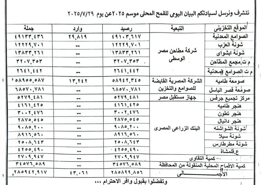 تواصل صوامع الغلال والشون والهناجر بالفيوم، استقبال محصول القمح من المزارعين لموسم 2025، تحت إشراف، مديرية التموين والتجارة الداخلية والإدارات التموينية بالمراكز والقرى.
