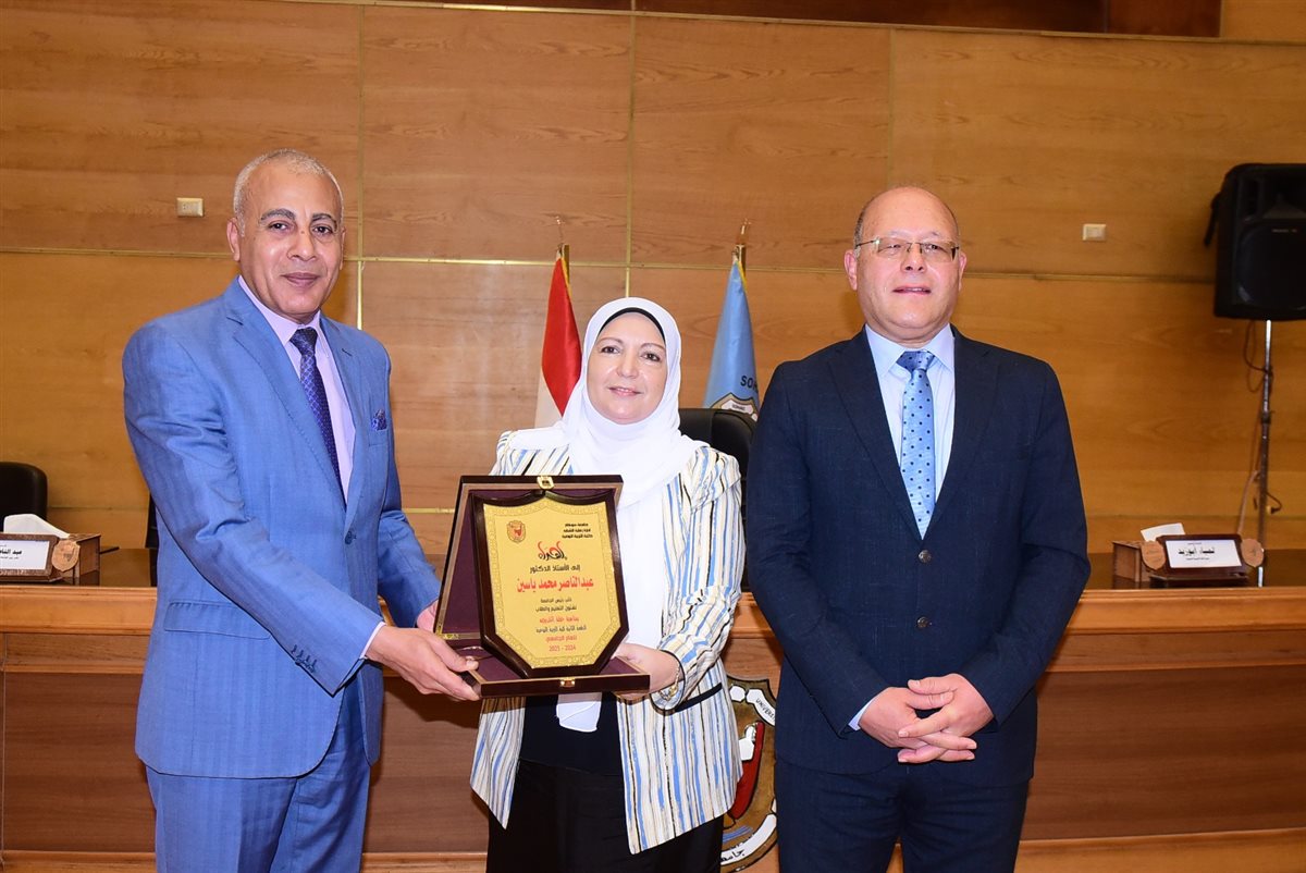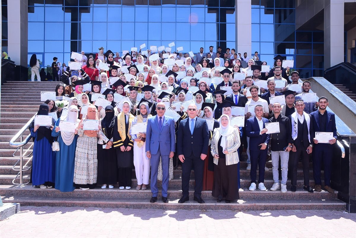 وفي نهاية الحفل قام رئيس الجامعة بتكريم أوائل الدفعة والتقاط الصور التذكارية معهم وتقديم درع الجامعة لعميدة الكلية وأيضا تقديم درع الكلية لرئيس الجامعة ونائبيه.