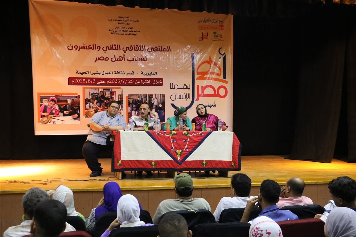 انطلقت بقصر ثقافة العمال بشبرا الخيمة، فعاليات الملتقى الثقافي الثاني والعشرين لشباب المحافظات الحدودية ضمن مشروع "أهل مصر"، تحت رعاية الدكتور أحمد فؤاد هنو وزير الثقافة، وتنظمه الهيئة العامة لقصور الثقافة برئاسة اللواء خالد اللبان، بمحافظة القليوبية، تحت شعار "يهمنا الإنسان".