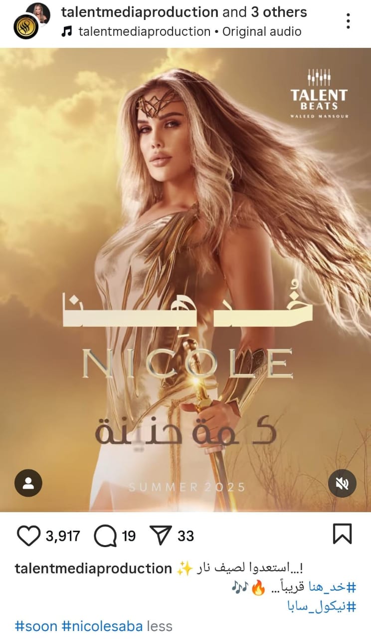 وطرحت نيكول سابا، عبر حسابها بموقع «إنستجرام» البرومو الترويجي لأغنيتها الجديدة «خد هنا» وعلقت قائلة: «استعدوا لصيف نار».