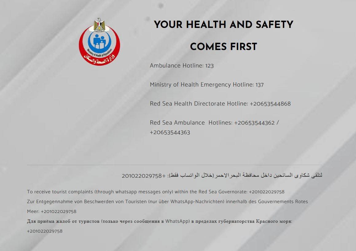 محافظ البحر الأحمر يوجّه بإطلاق خط ساخن لتلقي شكاوى السائحين وبروشور صحي بعدة لغات:
