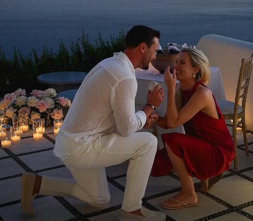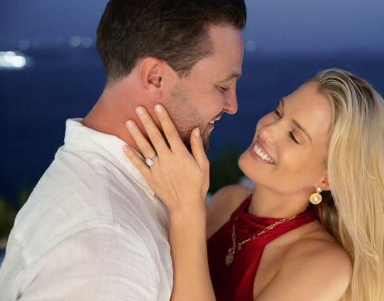 اختار تشانينغ ميلرد توقيت الغروب ليطلب يد إليزا، في لحظة شاعرية شهدها منظر طبيعي أخاذ يطل على بحر إيجه.