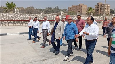 ثم انتقل وزير الإسكان، ومرافقوه، إلى موقع أعمال تنفيذ كوبري أعلى مسار القطار الكهربائي السريع بالمدينة.