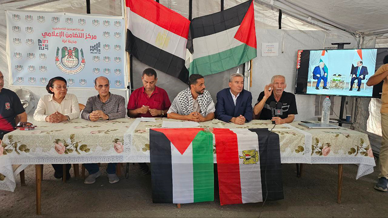 عقدت اليوم رابطة خريجي الجامعات المصرية وممثل الازهر الشريف الفلسطينية برئاسة الباحث الفلسطيني الدكتور توفيق ابو جراد وذلك بمقر نقابة الصحفيين بحي الرمال بمدينة غزة، مؤتمرا حاشدا شكرا ودعما لمصر وتقديرا لدورها التاريخي ورفضها لمخطط النهجير وطرد الشعب الفلسطيني من ارضه بقطاع غزة .