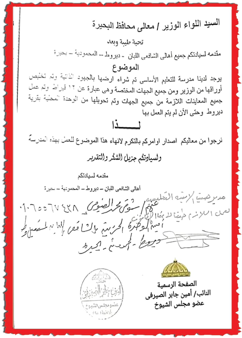 ويأمل أهالى الشافعى اللبان أن تتدخل الجهات المعنية، وعلى رأسها وزارة التربية والتعليم ومحافظة البحيرة، لوضع هذا المطلب فى مقدمة أولوياتها، والعمل على سرعة إدراج المشروع ضمن خطة الإنشاءات الجديدة.